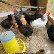 Ich lebe friedvoll mit meinen Hunden, Kater Janosch, den Ponys und Hühnern, den Feld- und Hofvögeln, dem Rabenkrähenpärchen, den Elstern und den Eichhörnchen zusammen.